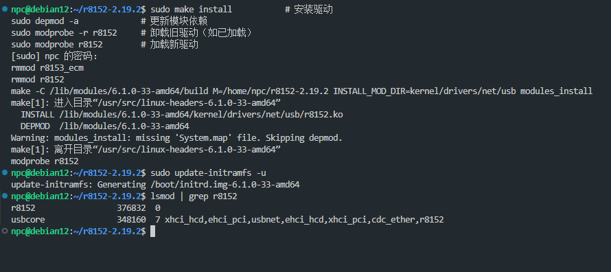sudo modprobe -r r8152 # 卸载旧驱动(如已加载)