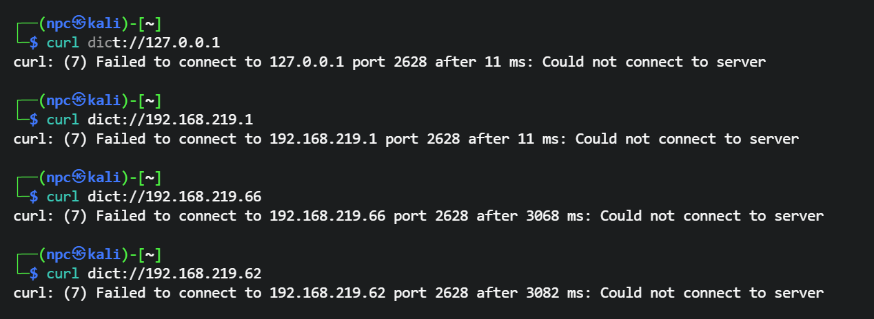 dict协议连接常见tcp协议端口时,会因为协议不兼容不匹配而返回错误信息,通过错误信息可以判断端口是否开放