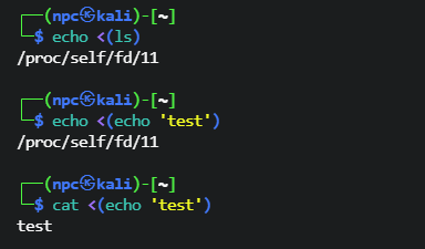 └─$ cat <(echo 'test')