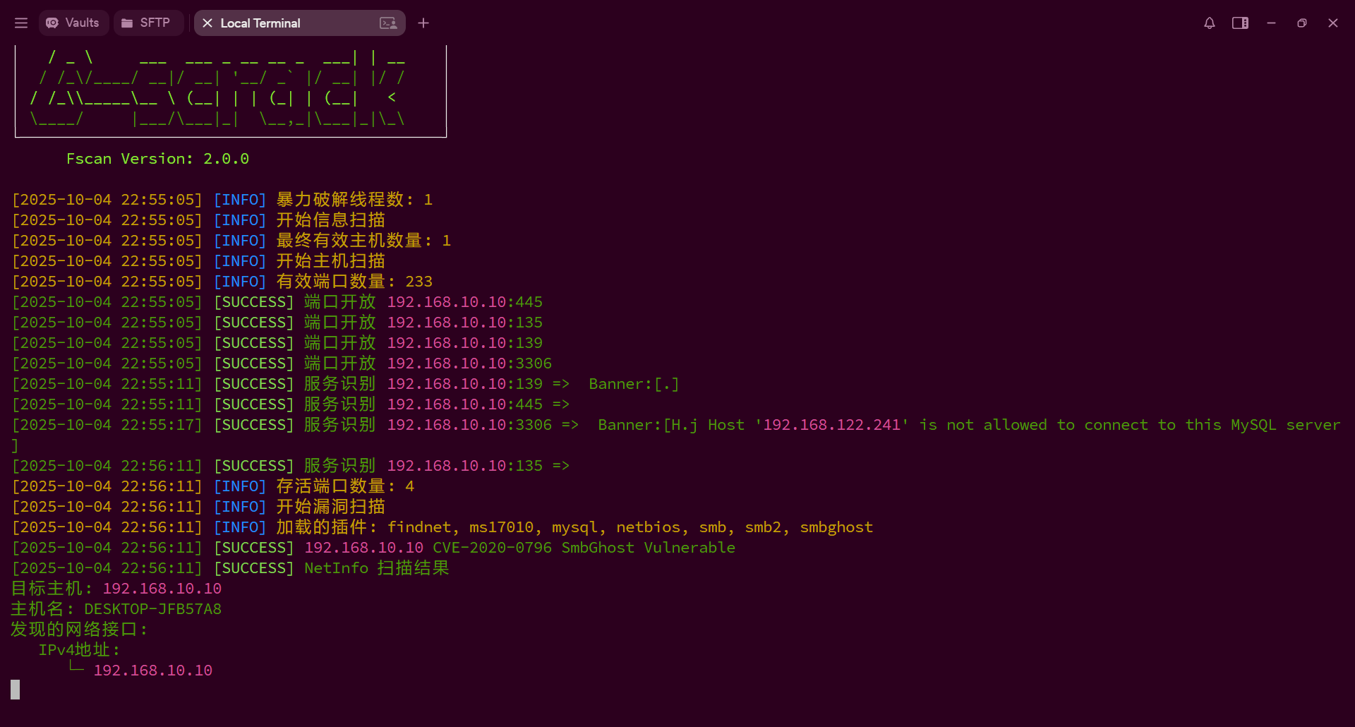fscan -h 192.168.10.10 -o 192.168.10.10.result.txt