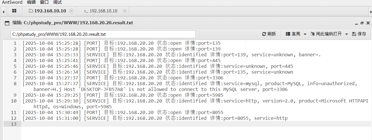 fscan -h 192.168.10.10 -p 1-65535 -o 192.168.10.10.result.txt