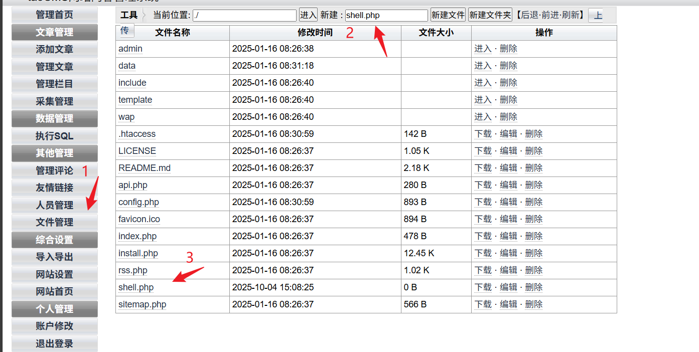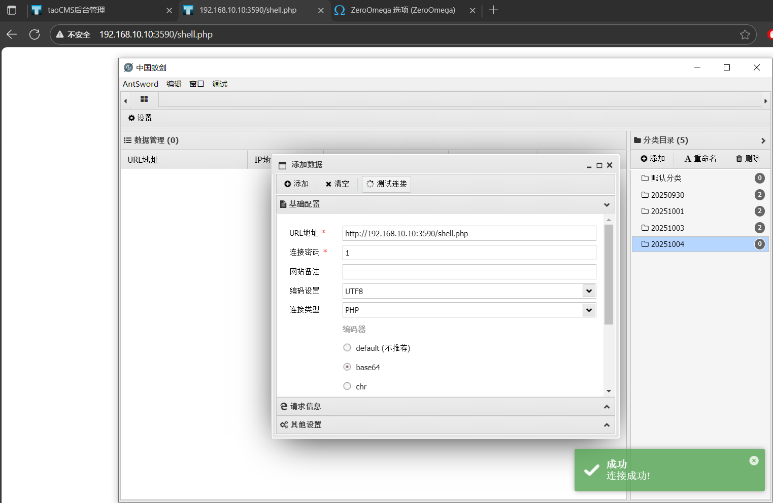 默认密码admin/tao成功进入后台,写入webshell,蚁剑连接