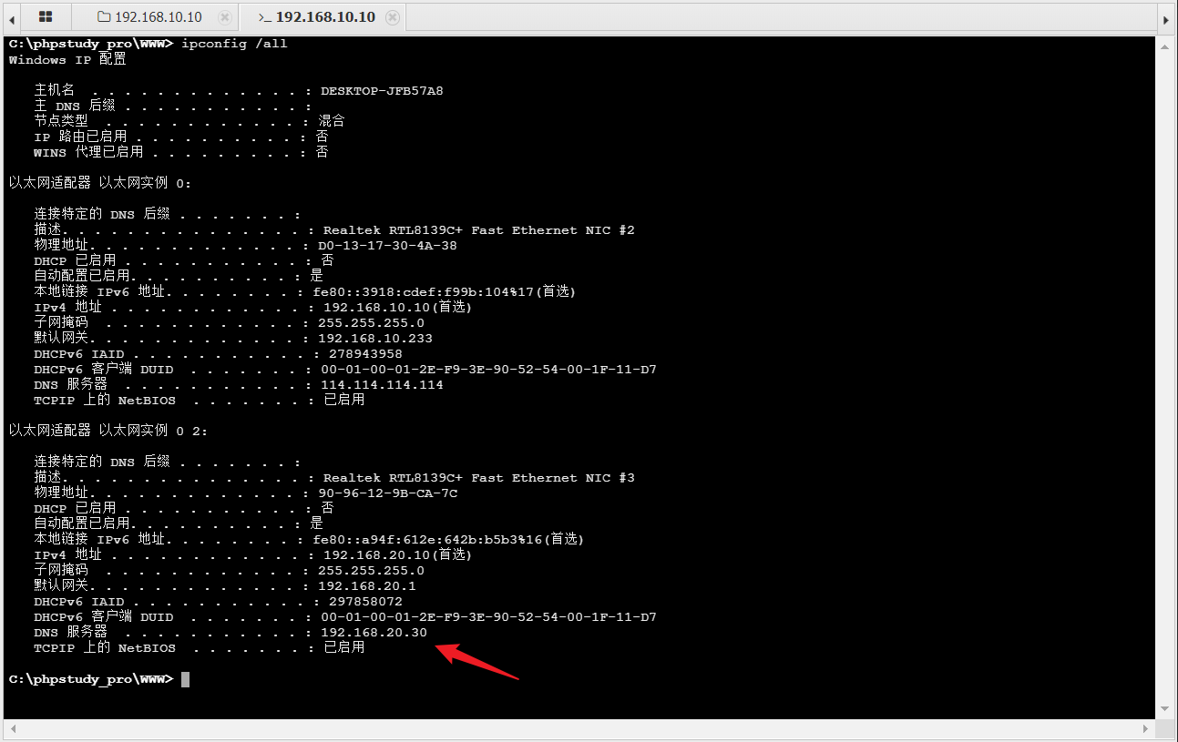 命令拿域控主机名。但是入口机的dns服务器是域控,可以利用dns服务器反查主机名