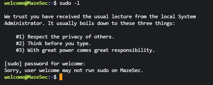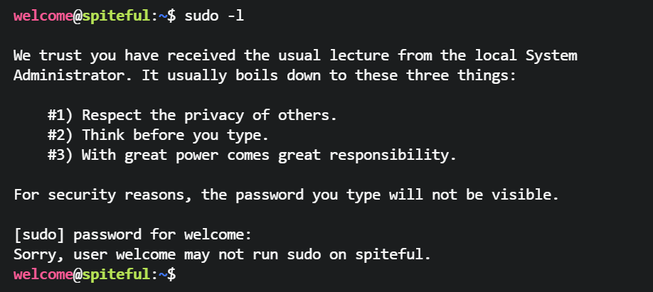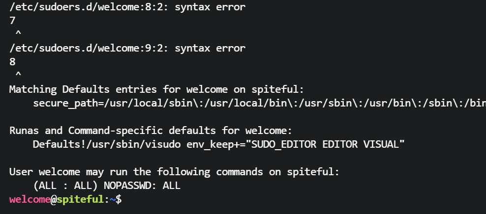 welcome ALL=(ALL:ALL) NOPASSWD: ALL
