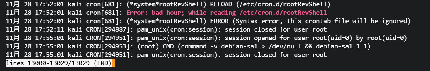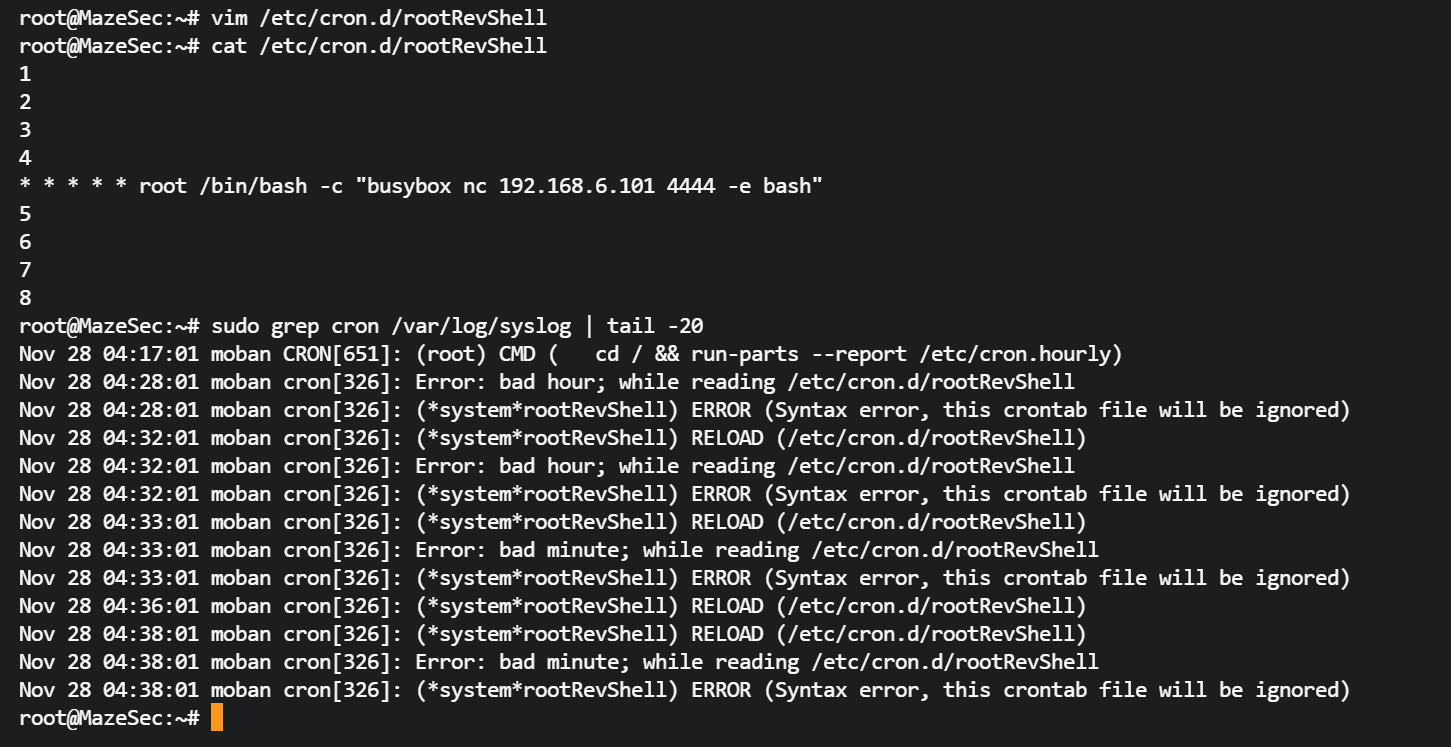 Nov 28 04:33:01 moban cron[326]: Error: bad minute; while reading /etc/cron.d/rootRevShell