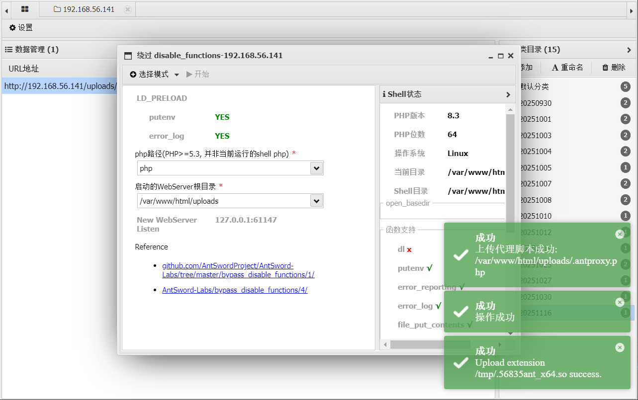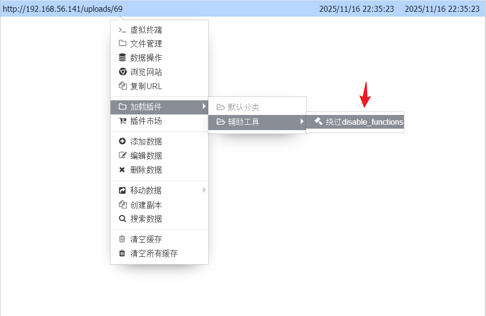 可以直接利用 中国蚁剑 的插件来实现绕过 disable_functions