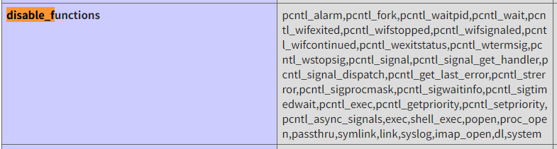 因为php配置文件禁用了几乎所有命令执行函数,如果 /tmp 目录可写,并且 putenv 、mail、error_log 函数可用,可以在 /tmp 上传恶意动态链接库文件,利用 putenv 函数设置环境变量,再通过 mail 或 error_log 函数开启一个子进程加载恶意动态链接库,从而实现代码执行。