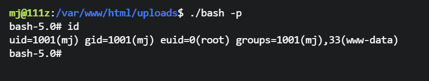 mj@111z:/var/www/html/uploads$ ./bash -p