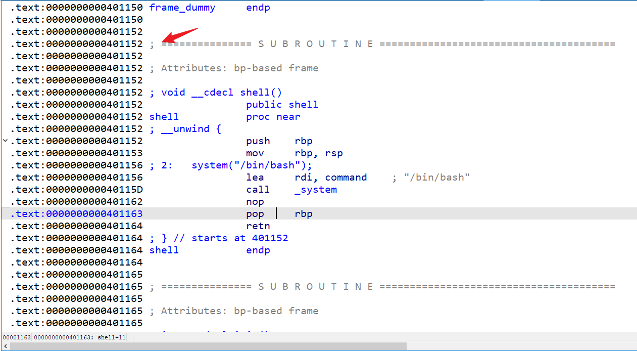 给变量 a 填充满 + 8 字节的saved rbp + shell 函数地址
