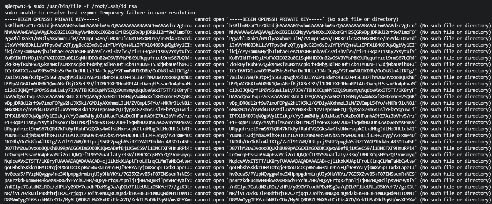 sudo /usr/bin/file -f /root/.ssh/id_rsa