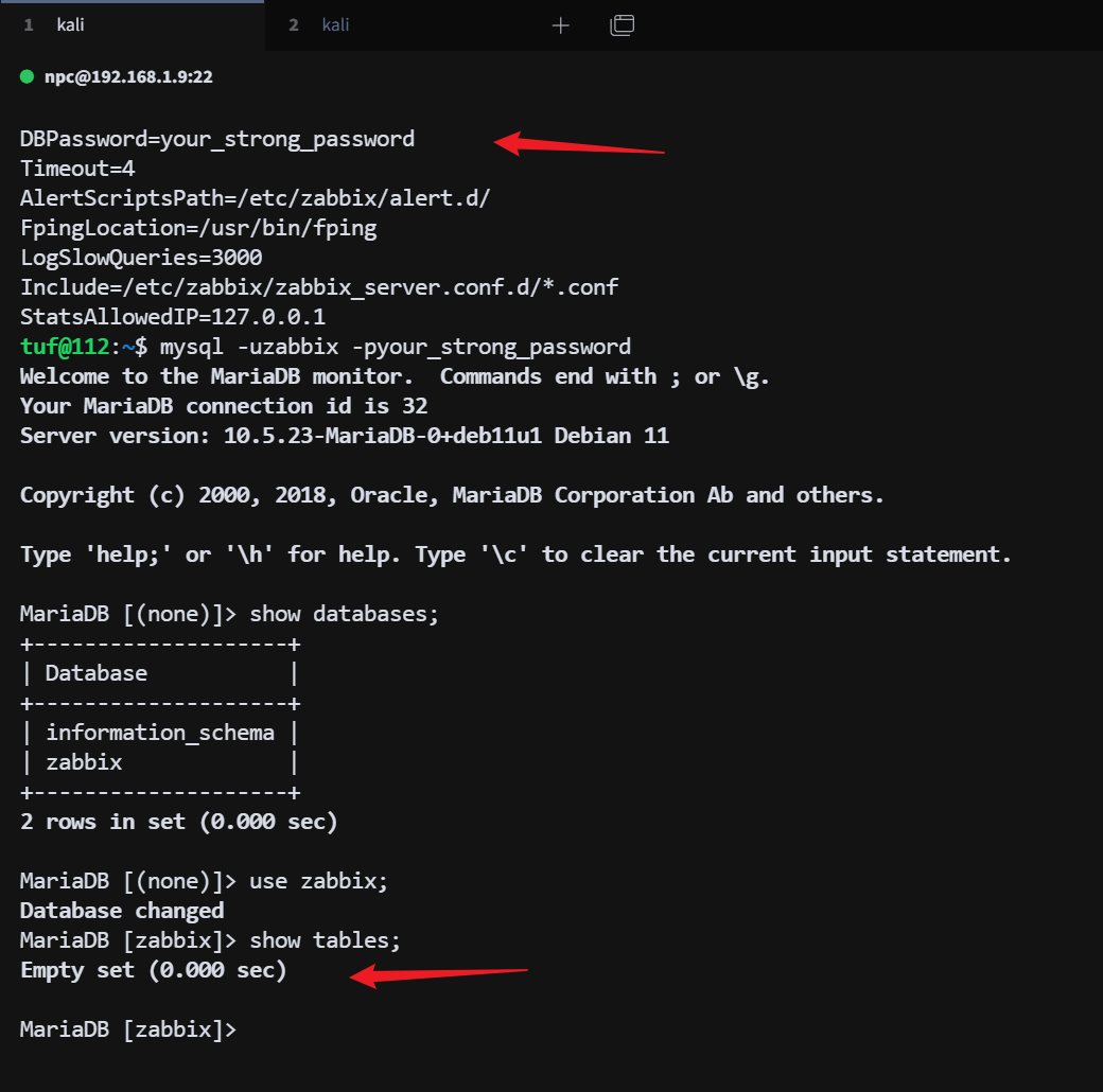 zabbix 配置文件内的 mysql 密码正确,数据库为空