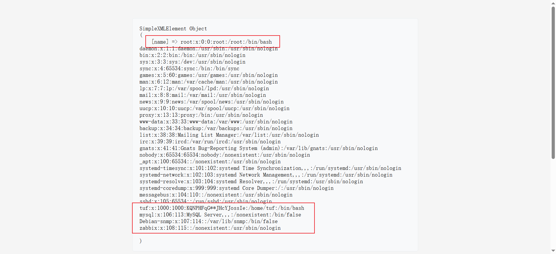 可以看到存在登录 shell 的用户 tuf,以及 tuf 用户后的几个服务用户