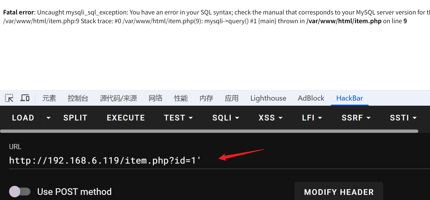 给页面的 id 参数添加一个单引号,出现 SQL 报错,放在 sqlmap 跑