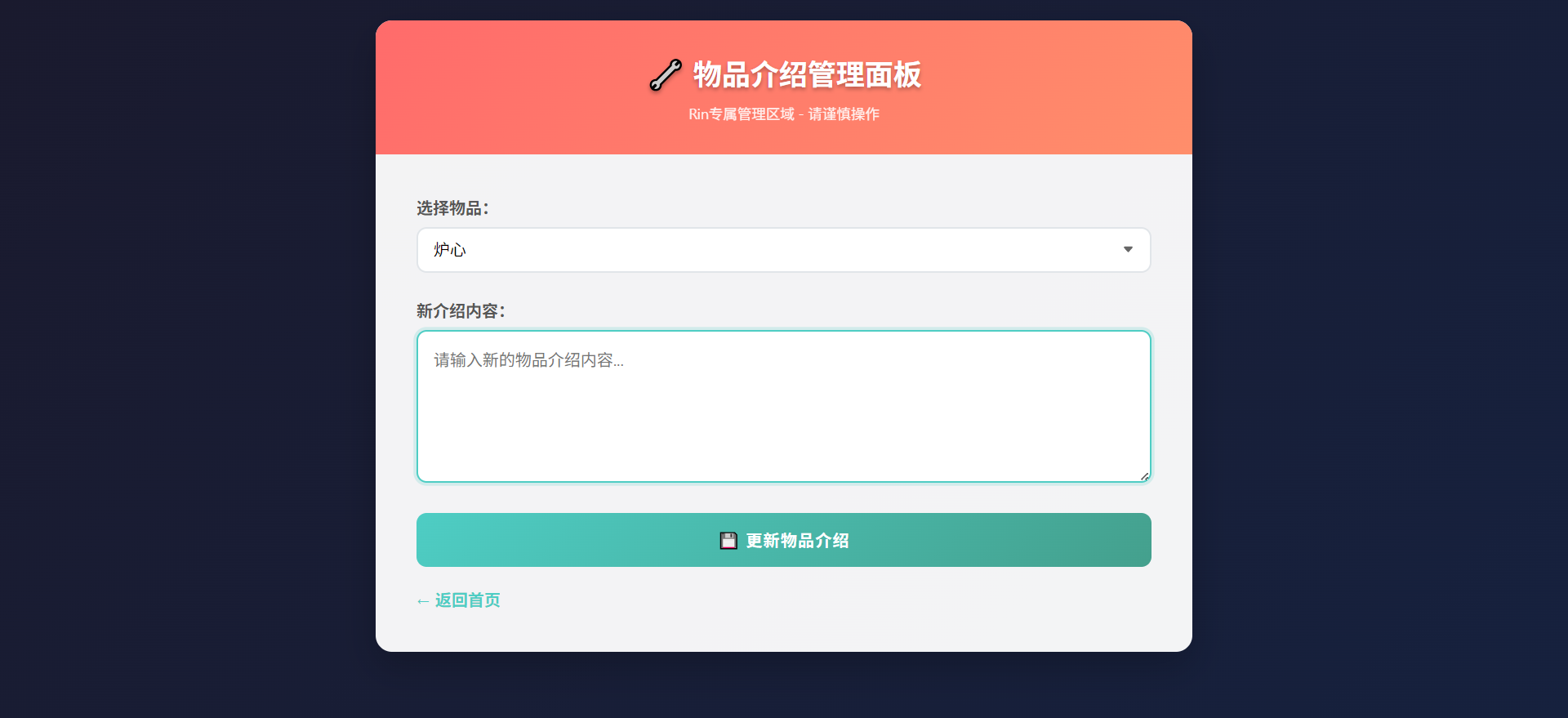 进入物品管理,物品介绍内容里写入 php 代码
