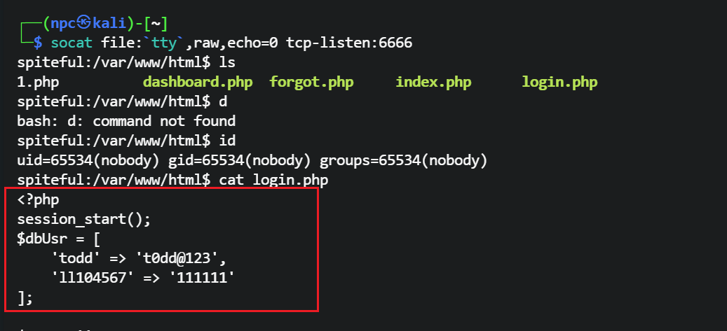 查看 login.php,发现 todd ssh凭证 todd:t0dd@123
