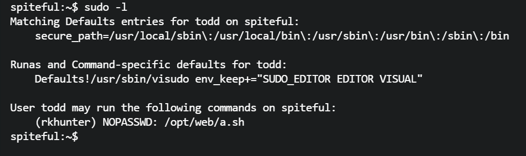 todd 可以以 rkhunter 身份执行一个脚本 /opt/web/a.sh,开了一个内置服务器在 8080 端口