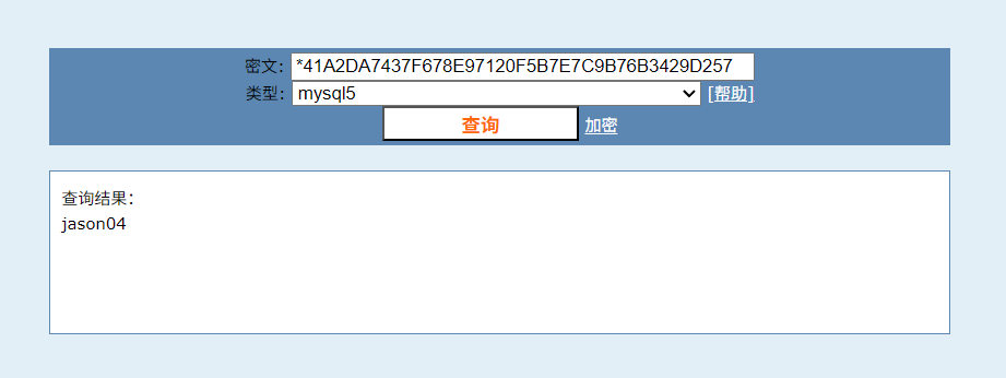 | root | *41A2DA7437F678E97120F5B7E7C9B76B3429D257 |