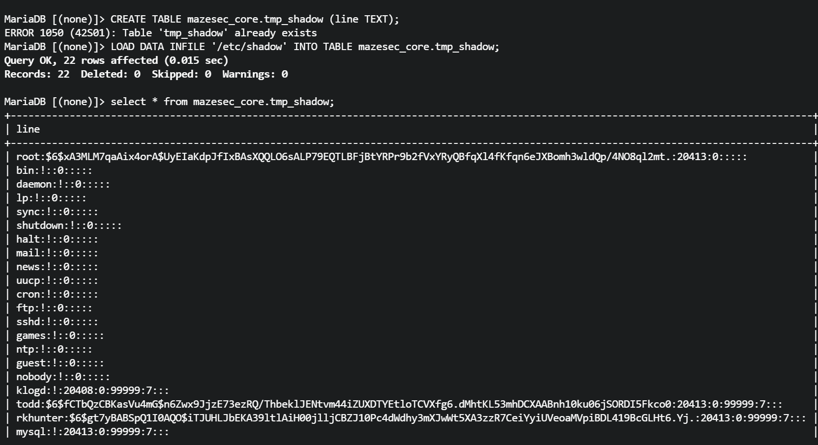 MariaDB [(none)]> select load_file('/etc/shadow');