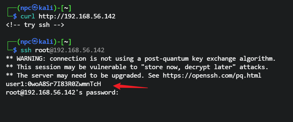 常规扫描没有发现有用信息,看到提示 try ssh,尝试 ssh 登录