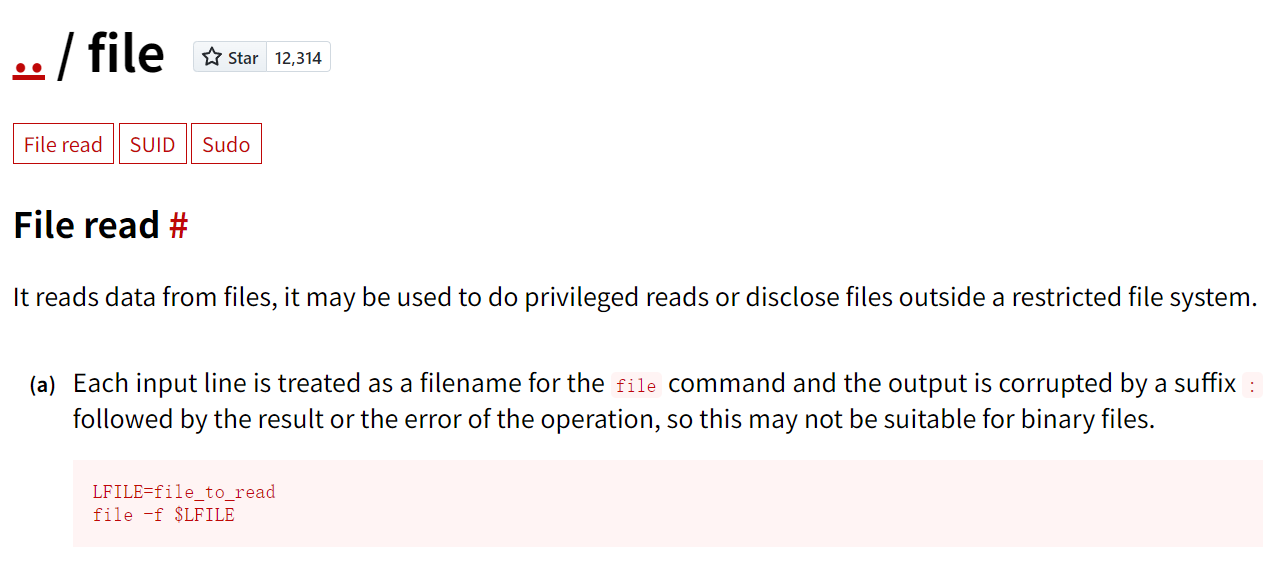 可以在 gtfobins 上找到利用方法 https://gtfobins.github.io/gtfobins/file/ (opens new window)