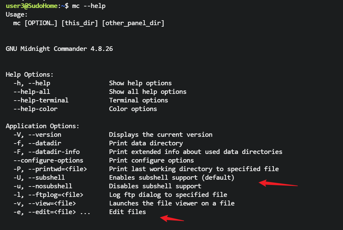 user3@SudoHome:~$ sudo -u user4 /usr/bin/mc -U