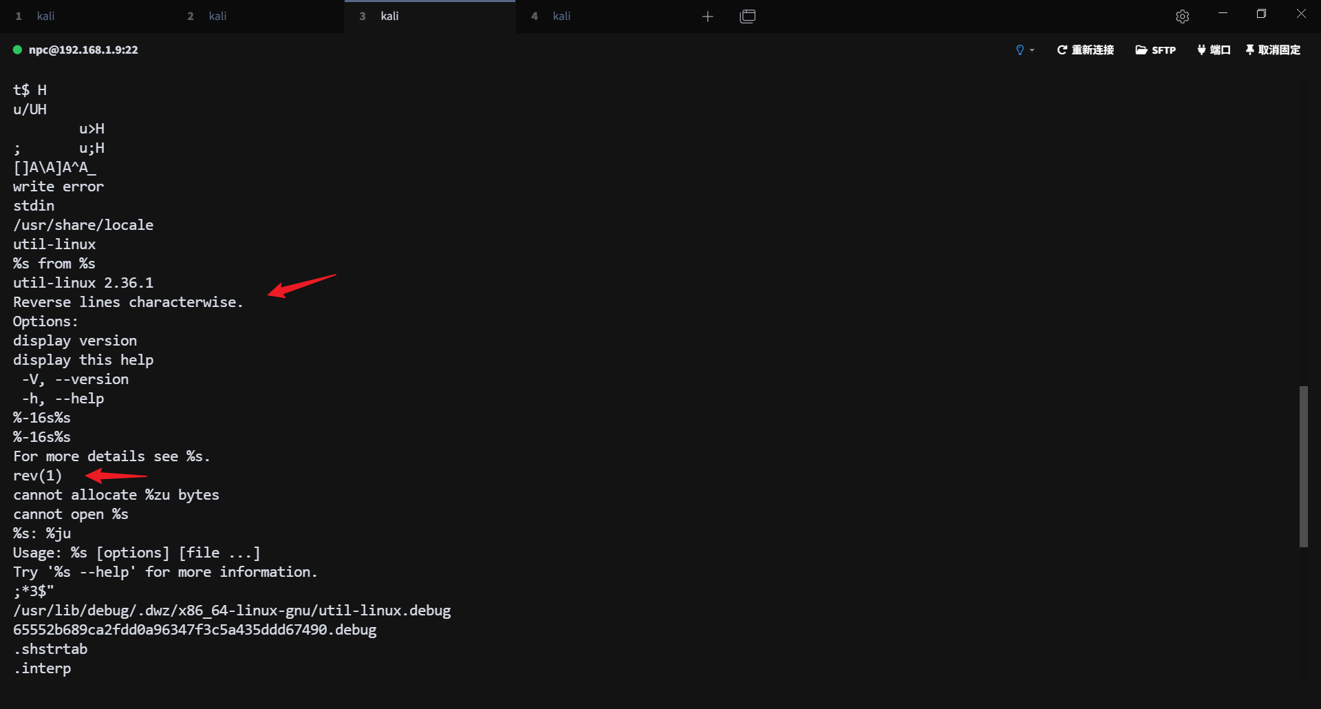 通过 strings 命令输出,可以判断这是一个 rev 二进制文件伪装的 suid 文件: