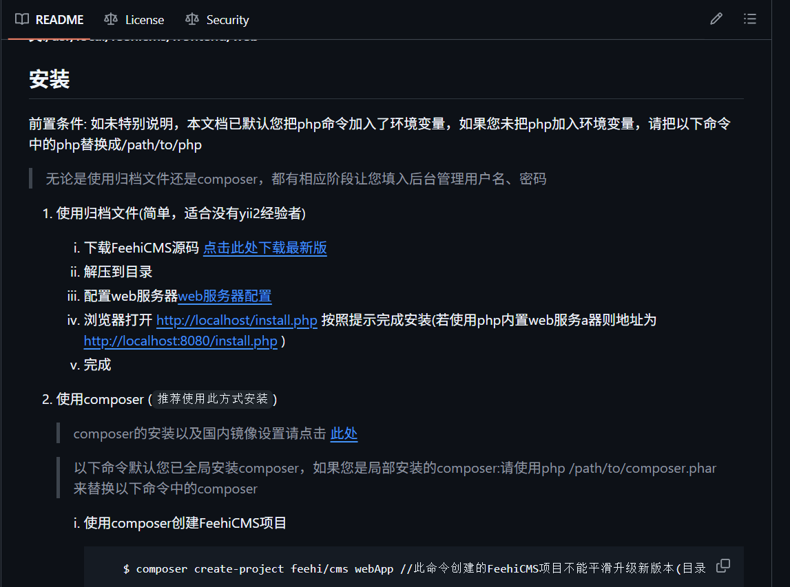 根据项目的 README 说明,部署 Feehi CMS