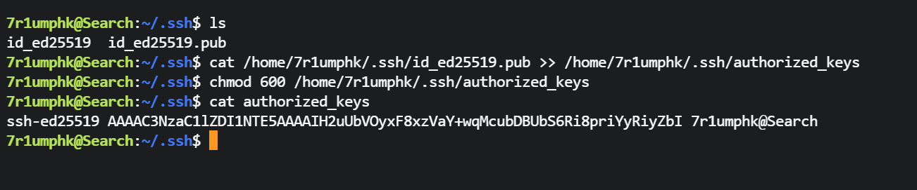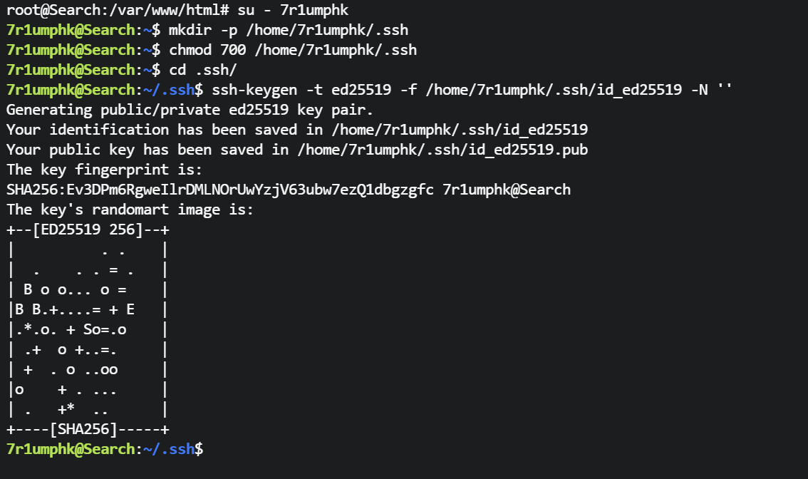 6、选手尝试读取默认 id_rsa 私钥,未考虑到可能存在其他算法的私钥文件,如果 id_ed25519 ,错失提升到 7r1umphk 用户的机会。