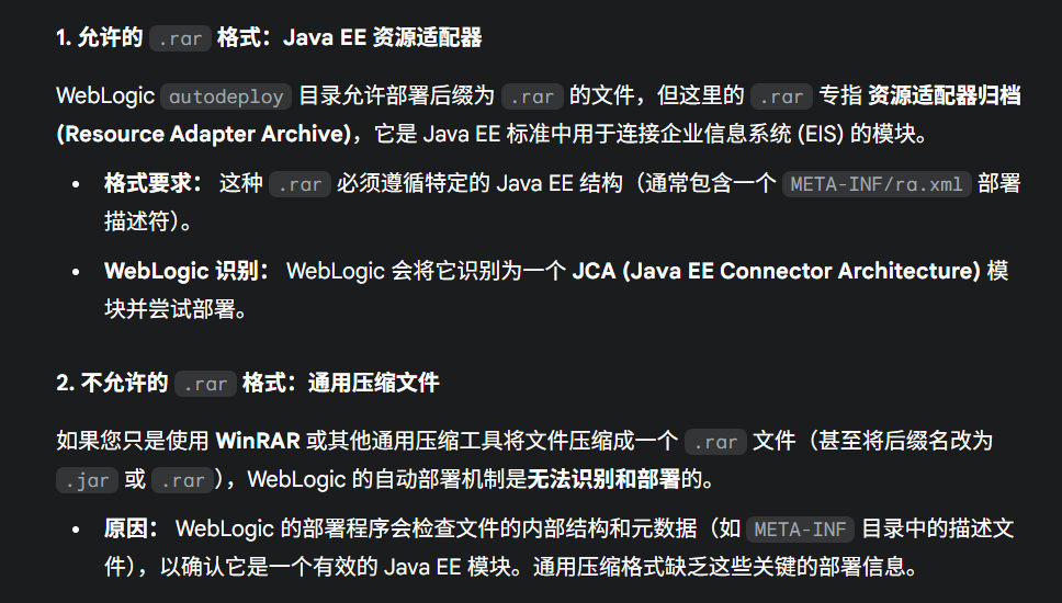 拷打哈基米,weblogic允许的rar格式并不是常用的压缩rar格式,所以失败了