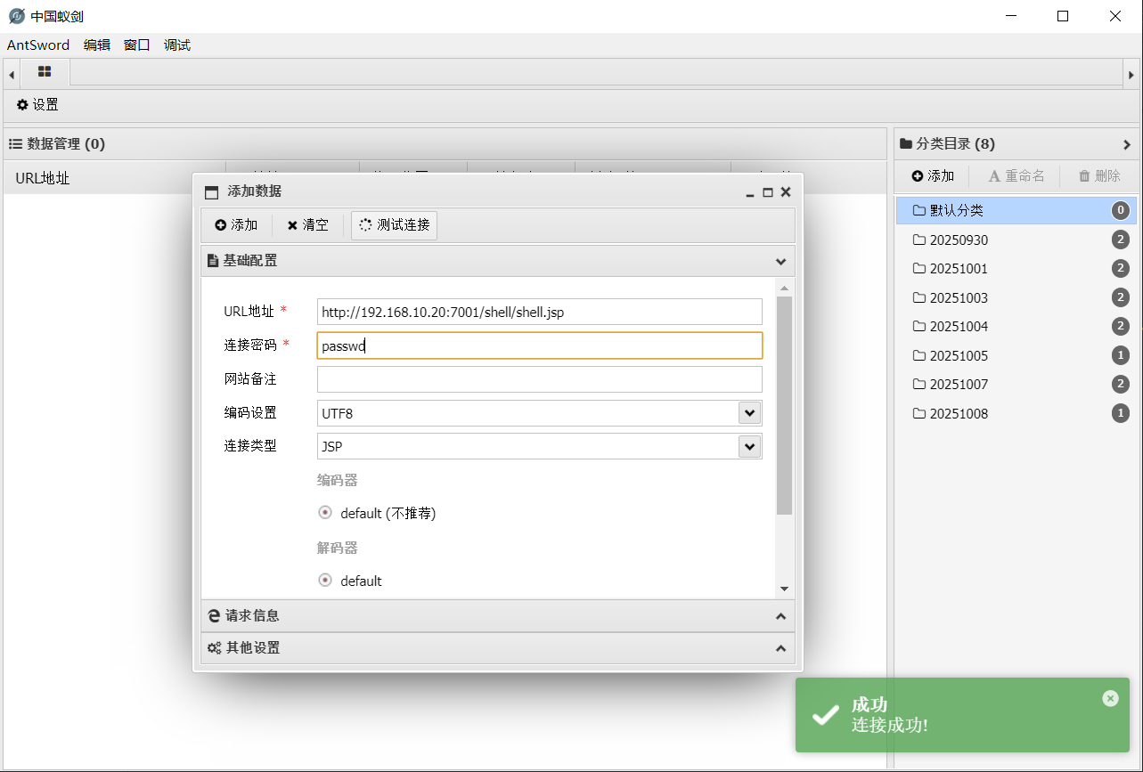 在打靶过程发现一台Windows Weblogic服务器,存在CVE-2016-0638 反序列化漏洞,可以任意命令执行,在想怎么写入webshell,webshell客户端连接方便利用